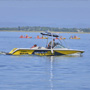 Si sos principiante, los primeros minutos practicás la técnica de salida en la barra lateral (sistema europeo) y luego completás el tiempo esquiando detrás de la lancha con manillar.